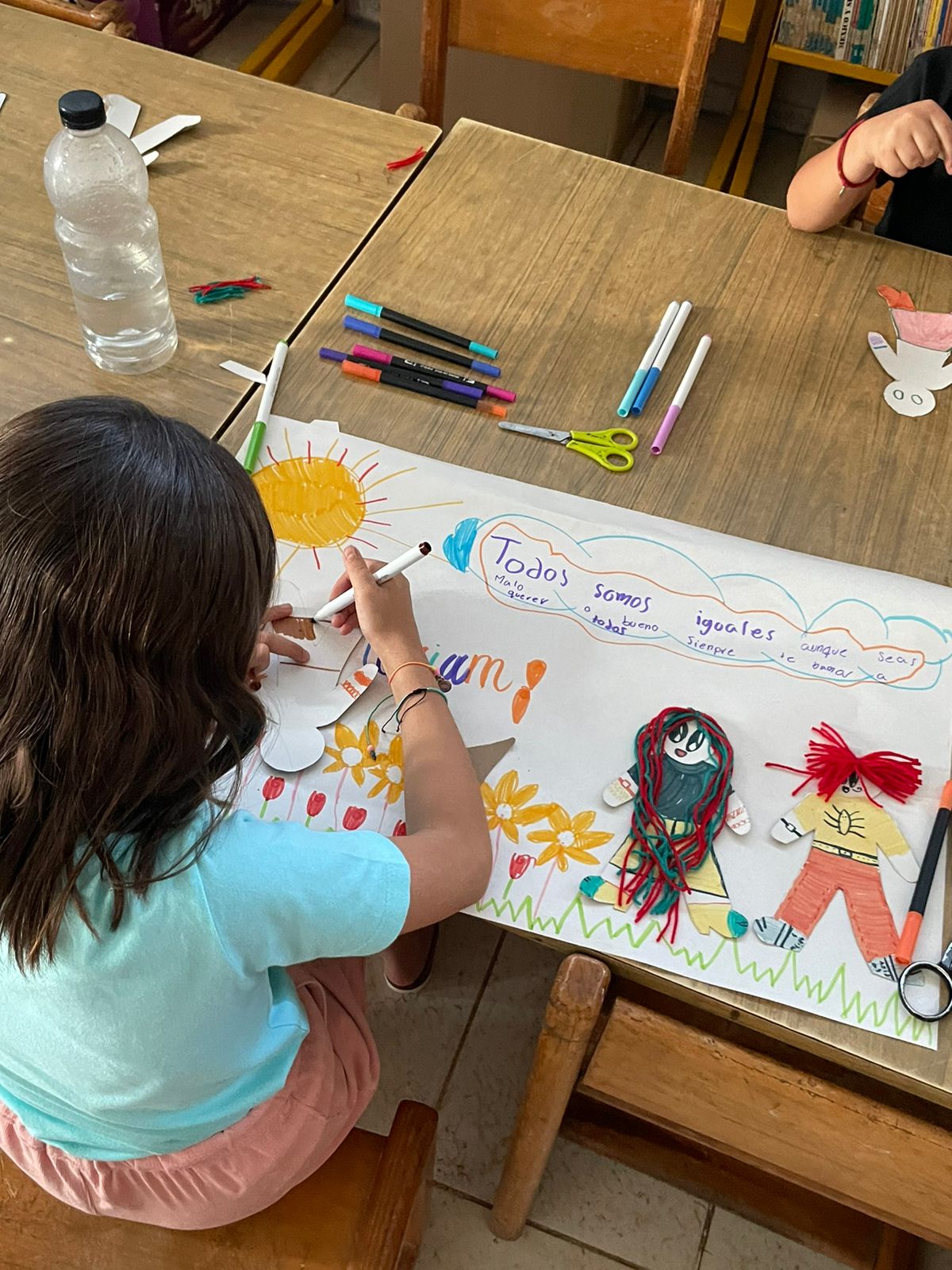 Se contó con la participación de un cuenta cuentos y después se colorearon carteles con mensajes de empatía, todo esto por la pedagoga Martha Karina Rodríguez.