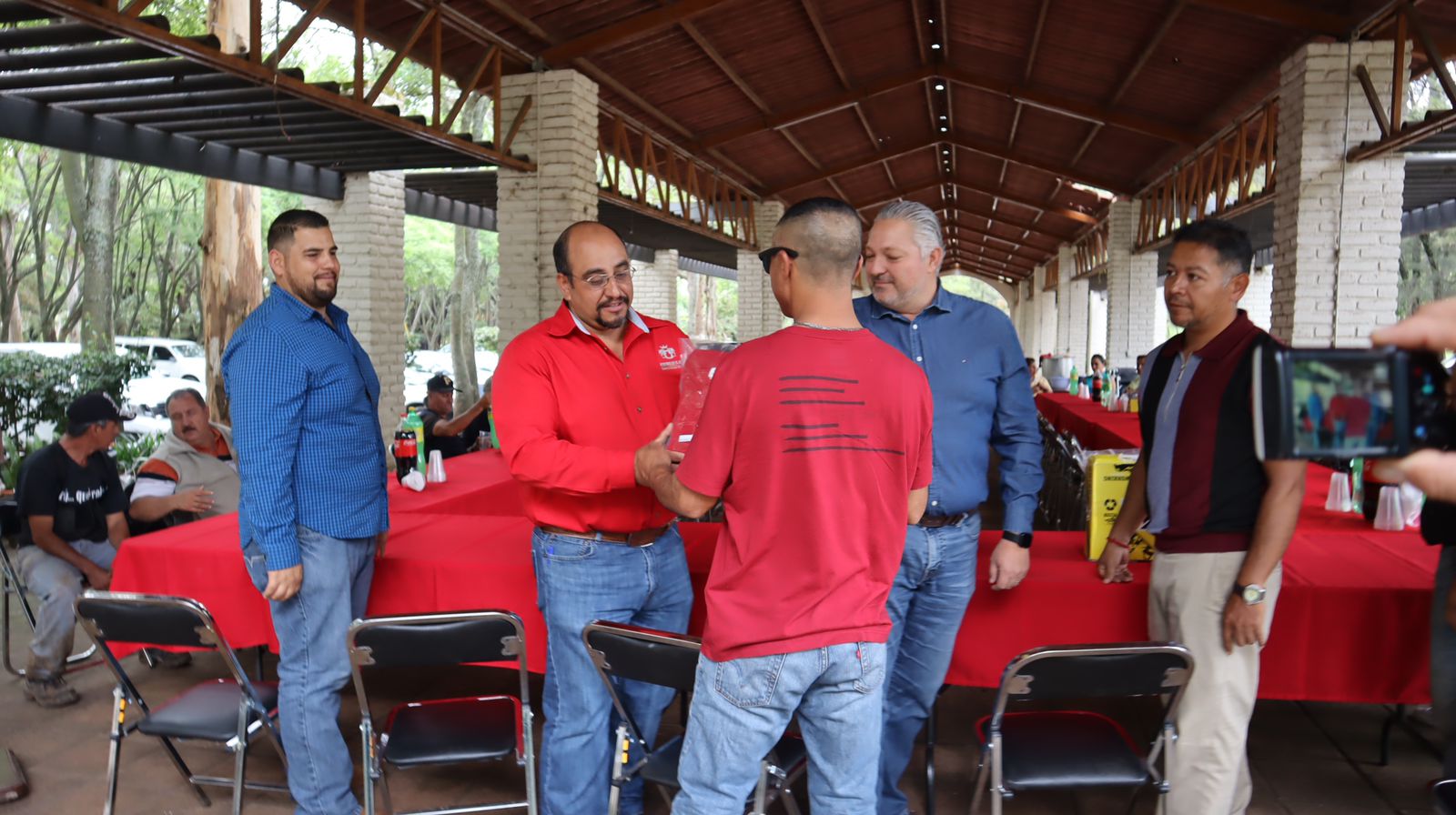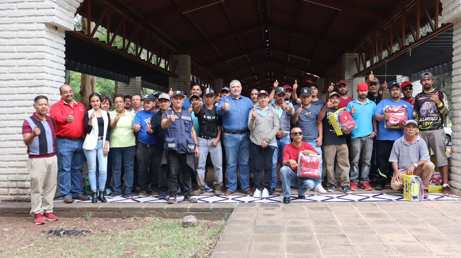 Buscando seguir mejorando las condiciones de trabajo del personal de Aseo Público, se realizó la entrega de: dos playeras, un pantalón y un par de botas. A más de 40 trabajadores.