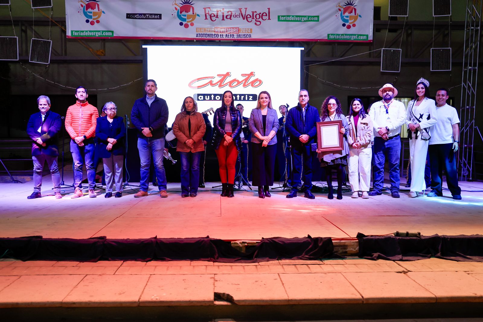 La ceremonia fue presidida por la Presidenta Municipal, Liliana Padilla, quien entregó un merecido reconocimiento a los padrinos de la Feria, Isabel y Fernando, en agradecimiento por su destacada participación y compromiso con esta celebración.