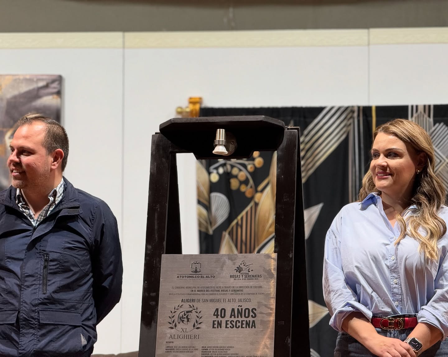 El evento contó con la distinguida presencia del Diputado Federal Alonso Vázquez y la Presidenta Municipal de Atotonilco el Alto, Liliana Padilla, quienes reconocieron la importancia de promover el arte y la cultura en la región. Durante la velada, las autoridades hicieron entrega de una placa conmemorativa en honor a los 40 años de trayectoria de esta emblemática obra, destacando su impacto en el teatro regional.