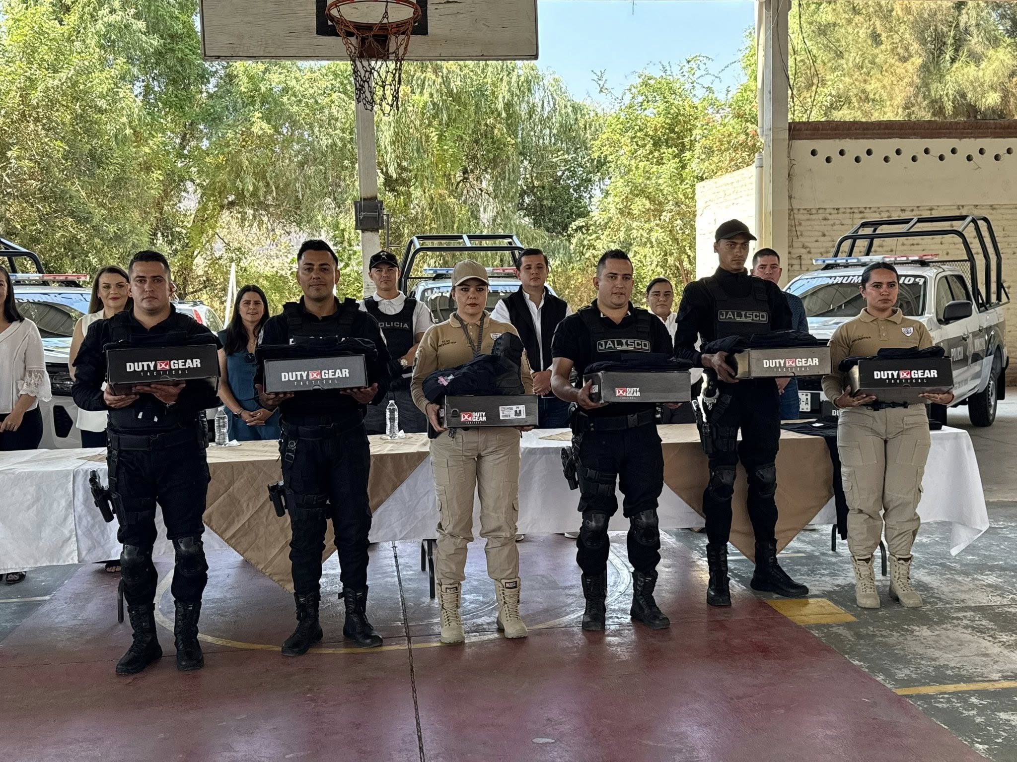 Durante el acto, también se hizo entrega de más de 130 uniformes completos, que incluyen camisola, pantalón y botas tácticas, con el fin de brindar a las y los elementos de la Policía Municipal el equipamiento necesario para ejercer su labor con profesionalismo, dignidad y eficiencia.