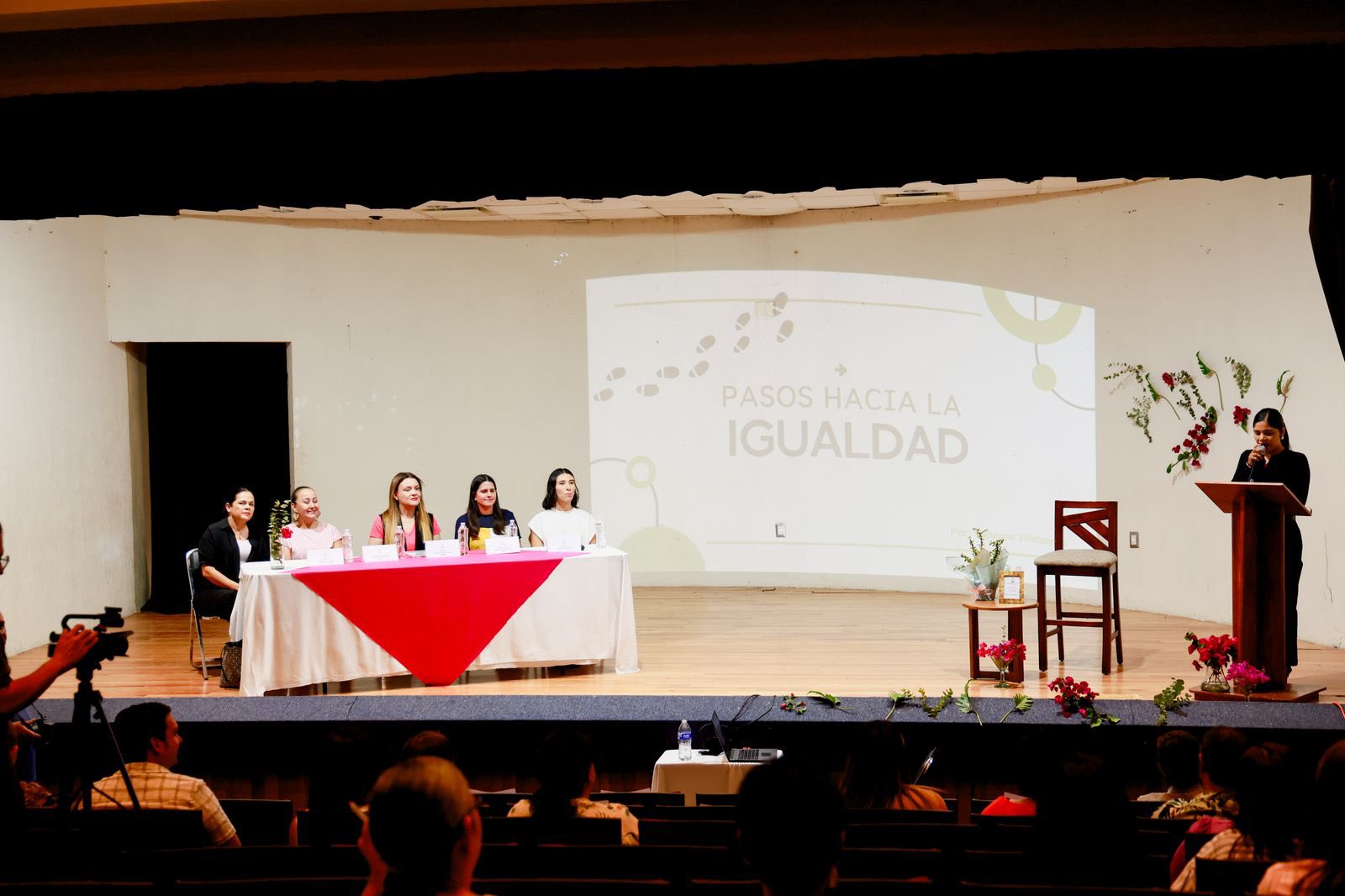 Durante el evento, se contó con la presencia y participación activa de destacadas personalidades del municipio, quienes formaron parte de una dinámica de preguntas y reflexión en torno a la temática: Mtra. Alma Gutiérrez Hernández, Comunicóloga Vanesa Gómez Flippen, C. Leticia Jaramillo Hernández y C. Roxana Ríos Aguiñaga