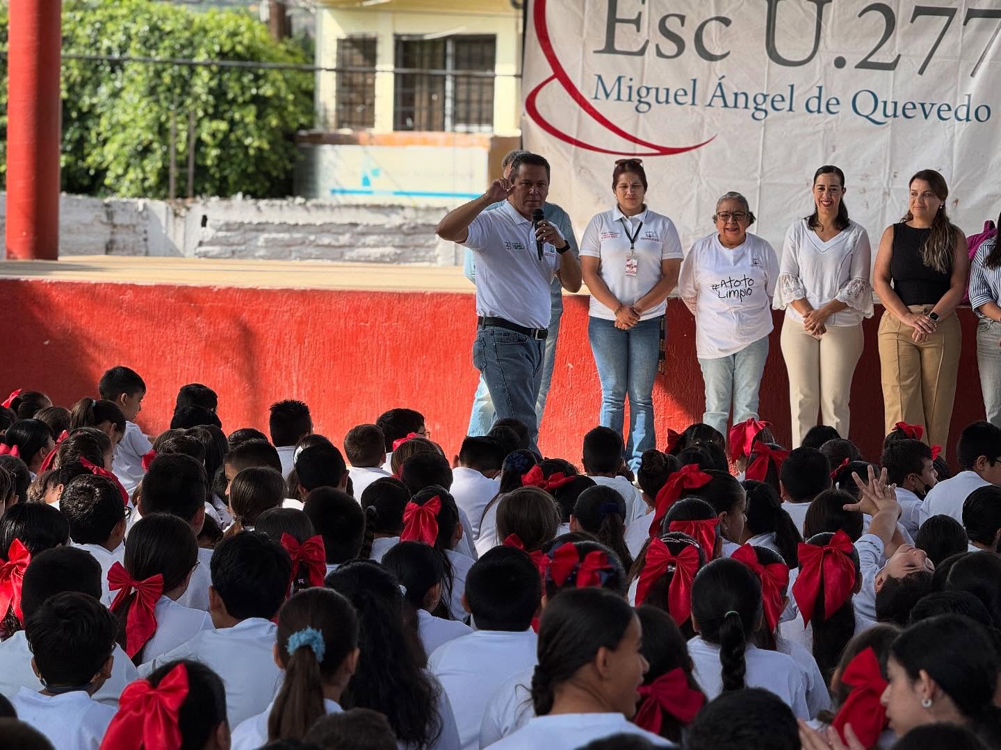 Después de una noche de lluvia, la mañana comenzó con gran entusiasmo en la escuela primaria Miguel Ángel de Quevedo, donde el equipo de Educación Ambiental del Gobierno Municipal llevó a cabo una nueva jornada de talleres formativos como parte de la campaña Atoto Limpio.