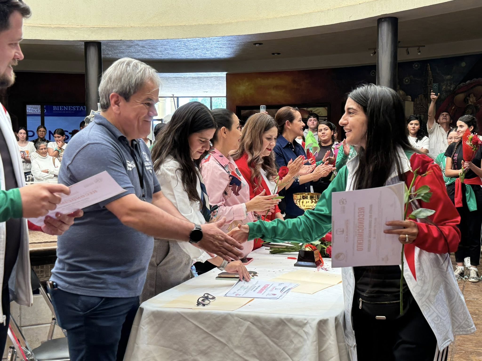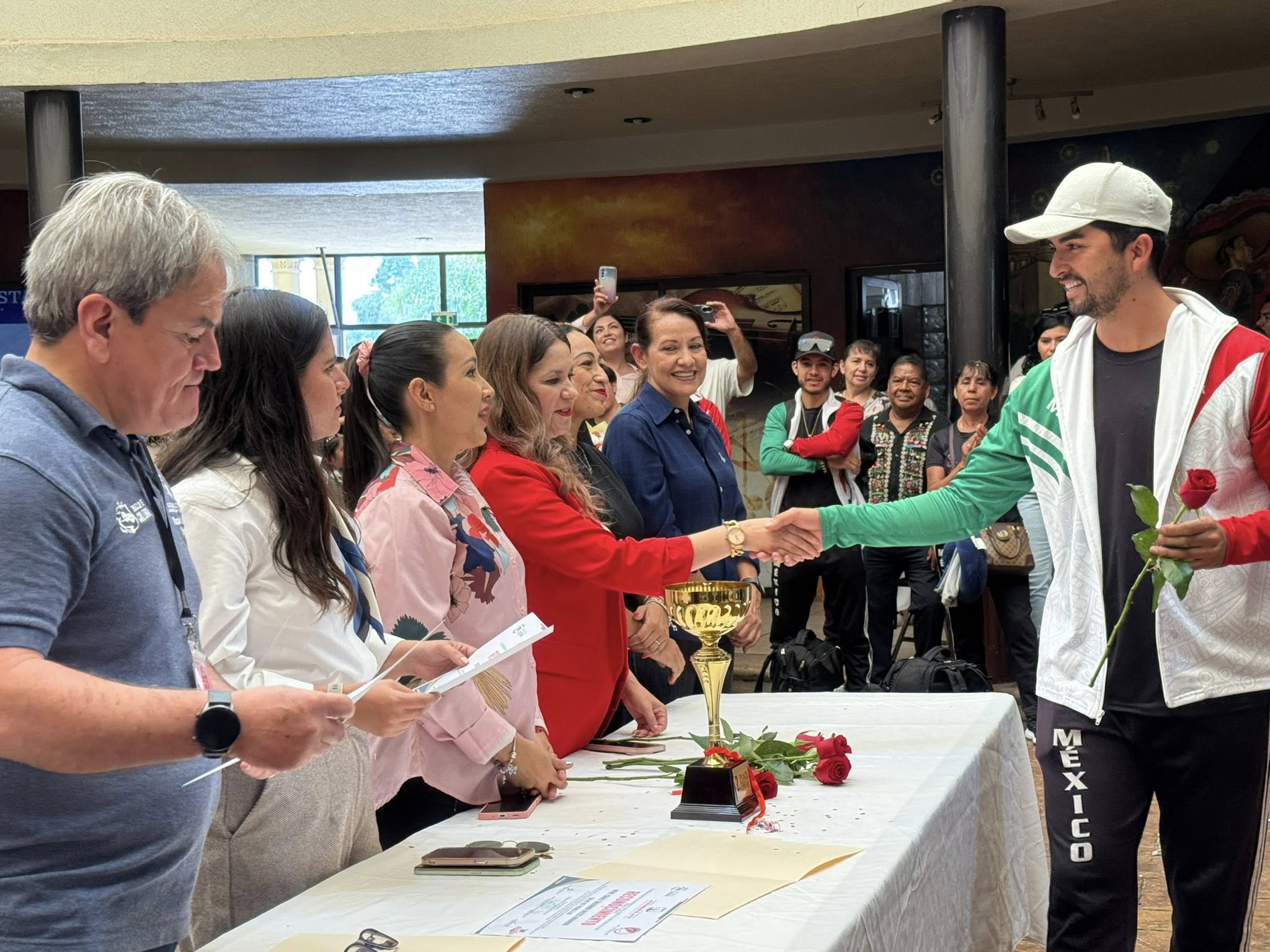 El grupo de talentosos bailarines fue recibido con una cálida bienvenida por parte de sus familias, amigos, autoridades municipales y ciudadanos que se congregaron en el centro cultural Dr. Juan José Espinoza, para expresar su admiración y agradecimiento. Al ritmo de la música tradicional mexicana, y en un ambiente lleno de alegría y orgullo, se llevó a cabo un emotivo acto de reconocimiento público, donde se les entregaron reconocimientos simbólicos por su sobresaliente labor como embajadores culturales.