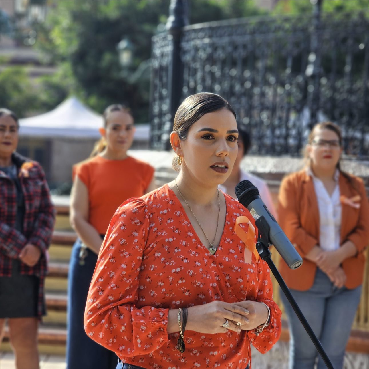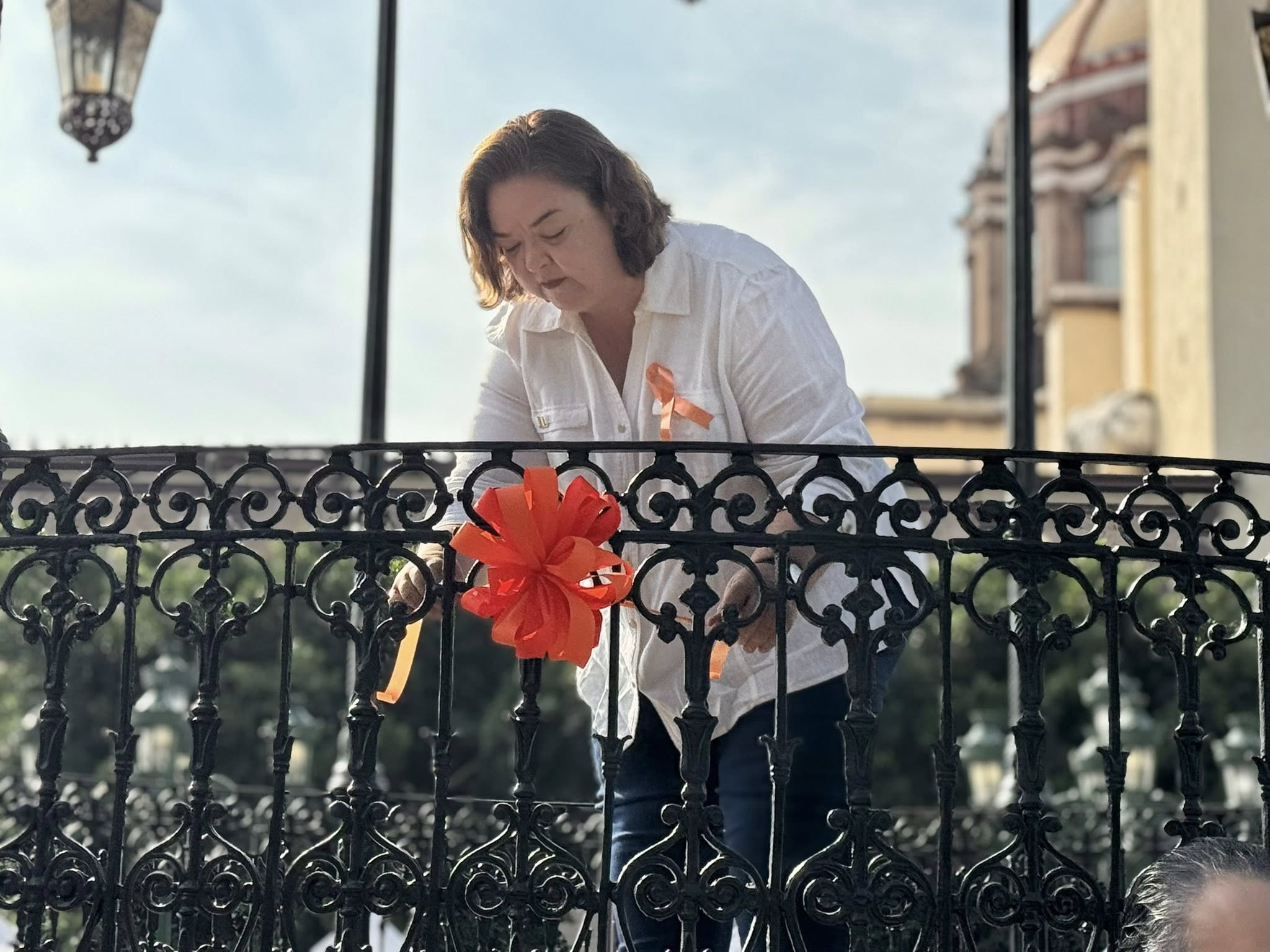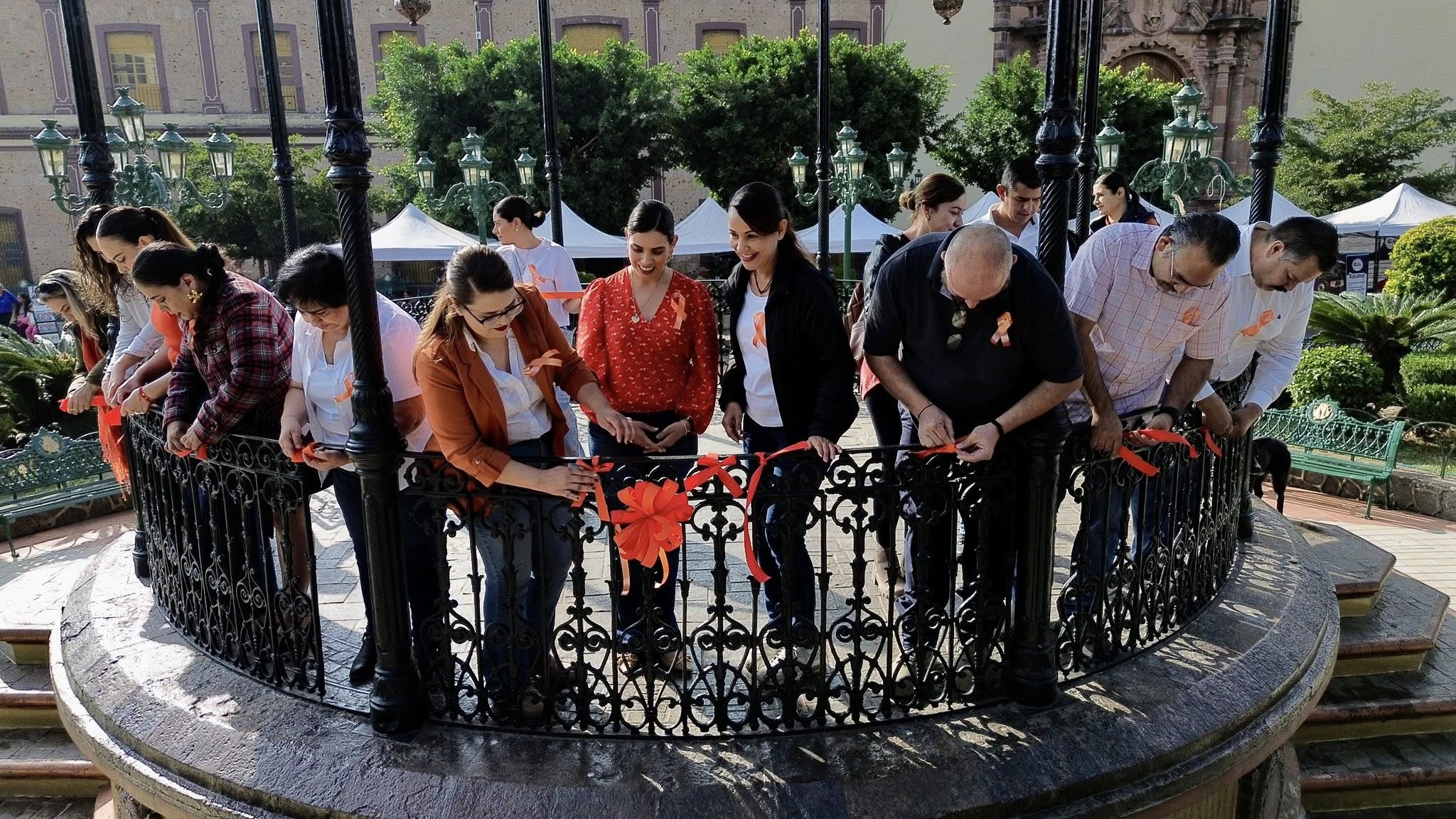 Como símbolo de esta lucha, se realizó la colocación de un moño y listones naranjas en el quiosco de la plaza principal, intervención que busca visibilizar el llamado a prevenir y eliminar la violencia contra las mujeres. El color naranja representa un futuro libre de agresiones y promueve la sensibilización ciudadana.