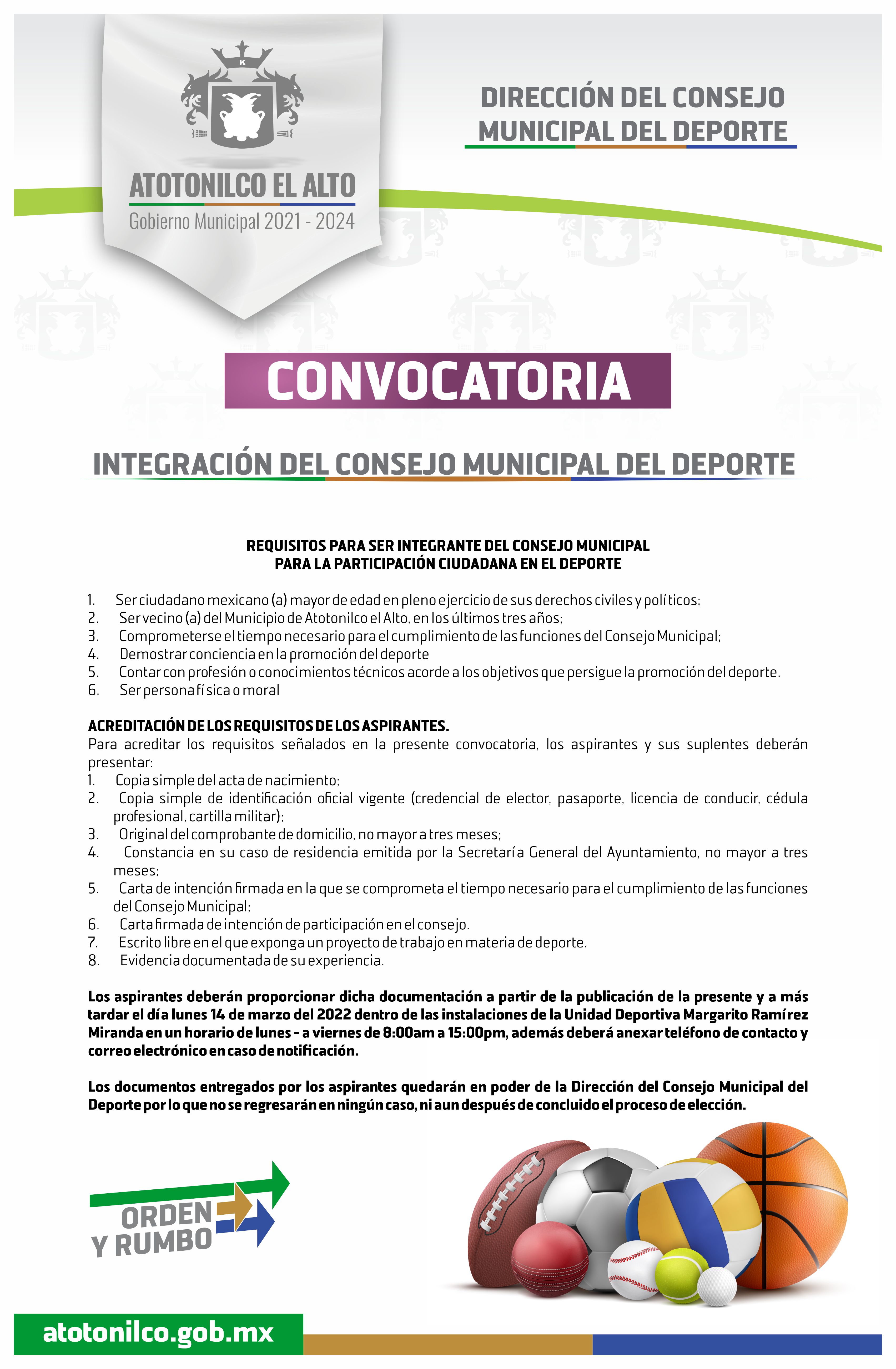 Convocatoria para la Integración del Consejo Municipal del Deporte.